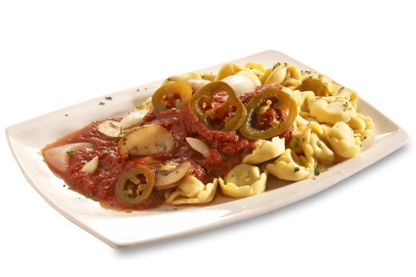 angebratene Schinkenwürfel und Knoblauch in Mama´s Tomatensosse mit einem Schuss sahnesosse
