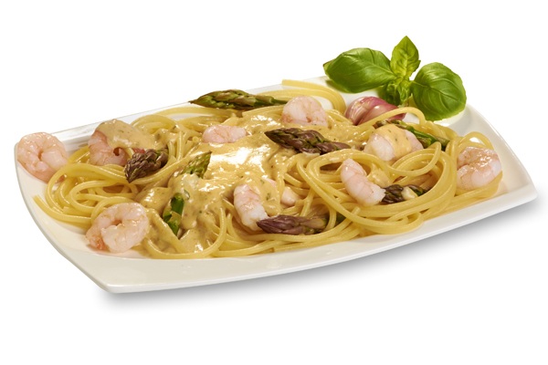Krabben, Spargel und Knoblauch in Sahnesauce